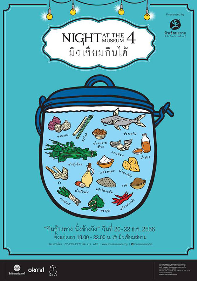 พบกับการสร้างประสบการณ์สดใหม่ ในการชมพิพิธภัณฑ์ ที่เป็นต้นแบบของแหล่งการเรียนรู้ที่น่ารื่นรมย์ ได้ในงาน “ไนท์ แอท เดอะ มิวเซียม (Night at the Museum)” ครั้งที่ 4 ตอนมิวเซียมกินได้ ระหว่างวันที่ 20 – 22 ธันวาคมศกนี้ เวลา 18.00 – 22.00 น. ณ มิวเซียมสยาม