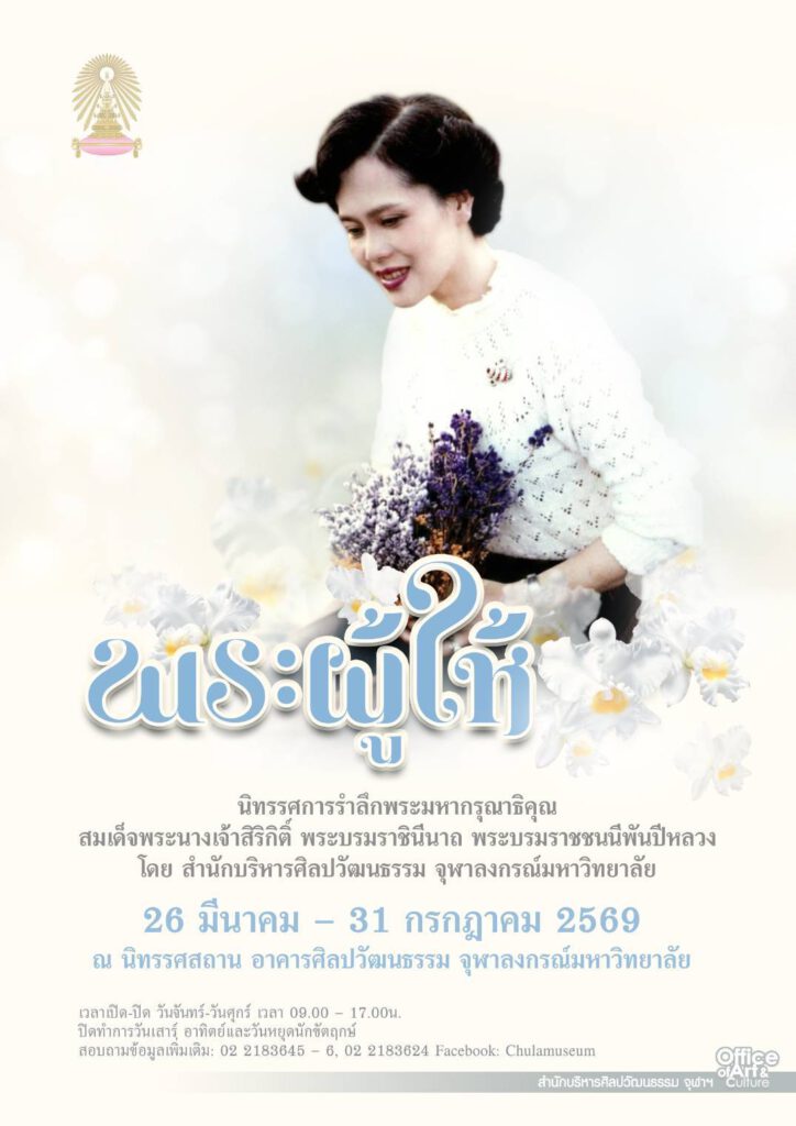 สำนักบริหารศิลปวัฒนธรรม จุฬาลงกรณ์มหาวิทยาลัย จัดนิทรรศการเรื่อง“พระผู้ให้” เพื่อรำลึกพระมหากรุณาธิคุณ สมเด็จพระนางเจ้าสิริกิติ์ พระบรมราชินีนาถ พระบรมราชชนนีพันปีหลวง ณ นิทรรศสถาน อาคารศิลปวัฒนธรรม ระหว่างวันที่ 26 มีนาคม – 31 กรกฎาคม 2569