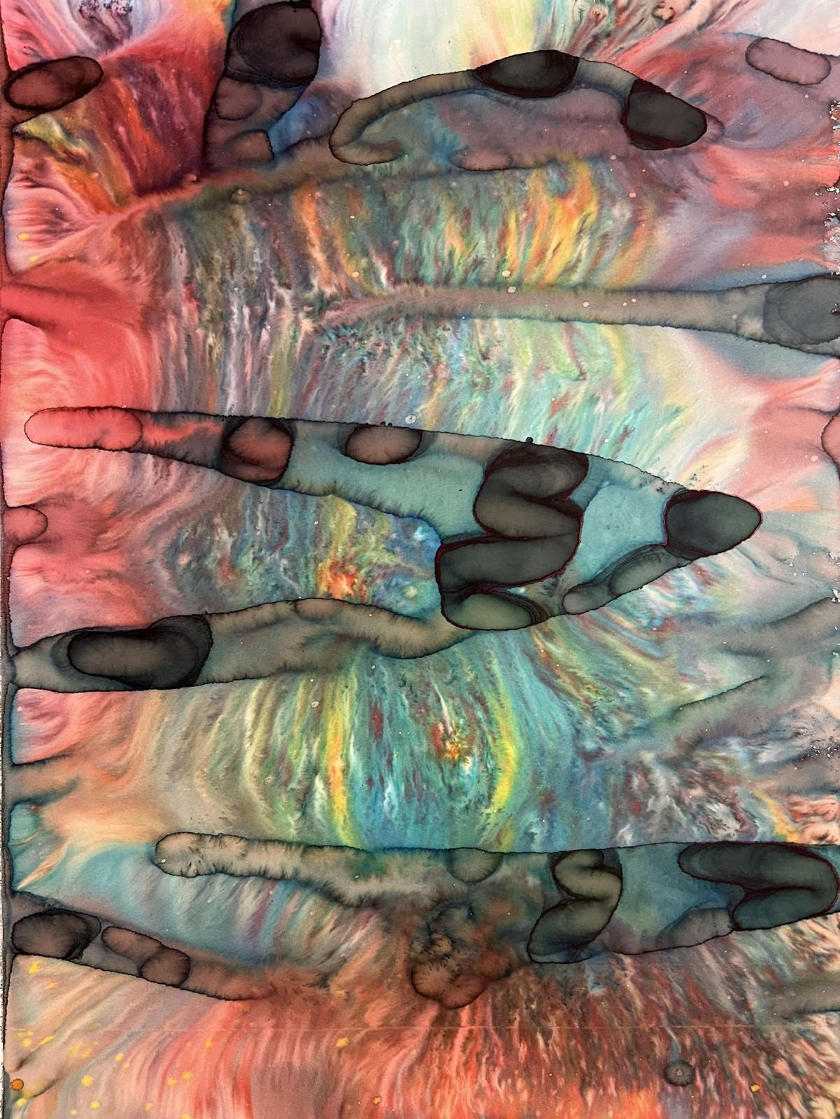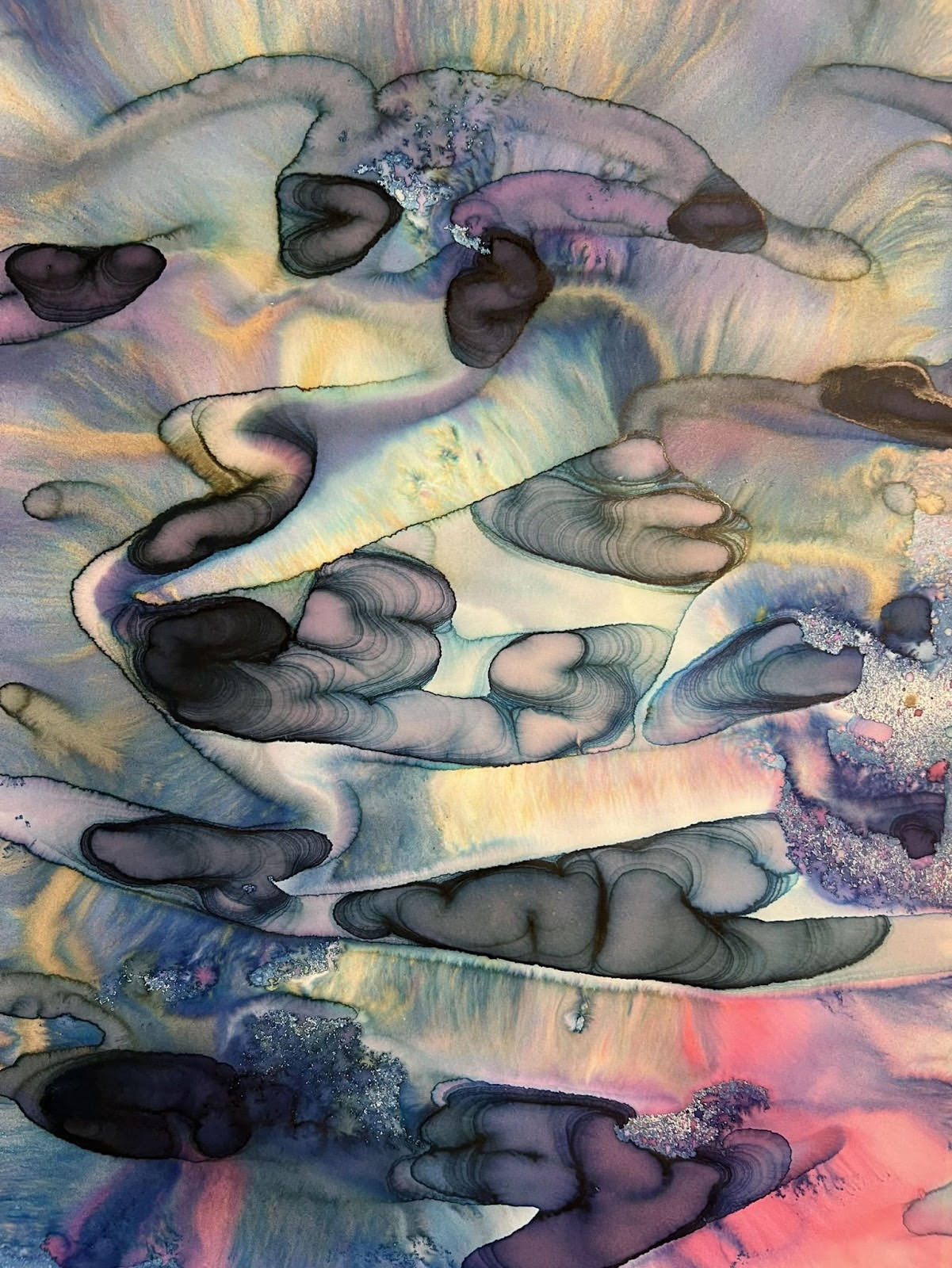 Fields of Conditions investigates the formation of reality through the interplay of forces—liquid, pigment, temperature, flow, and surface—none of which acts as a singular determinant, but rather as conditions that enable form to emerge.