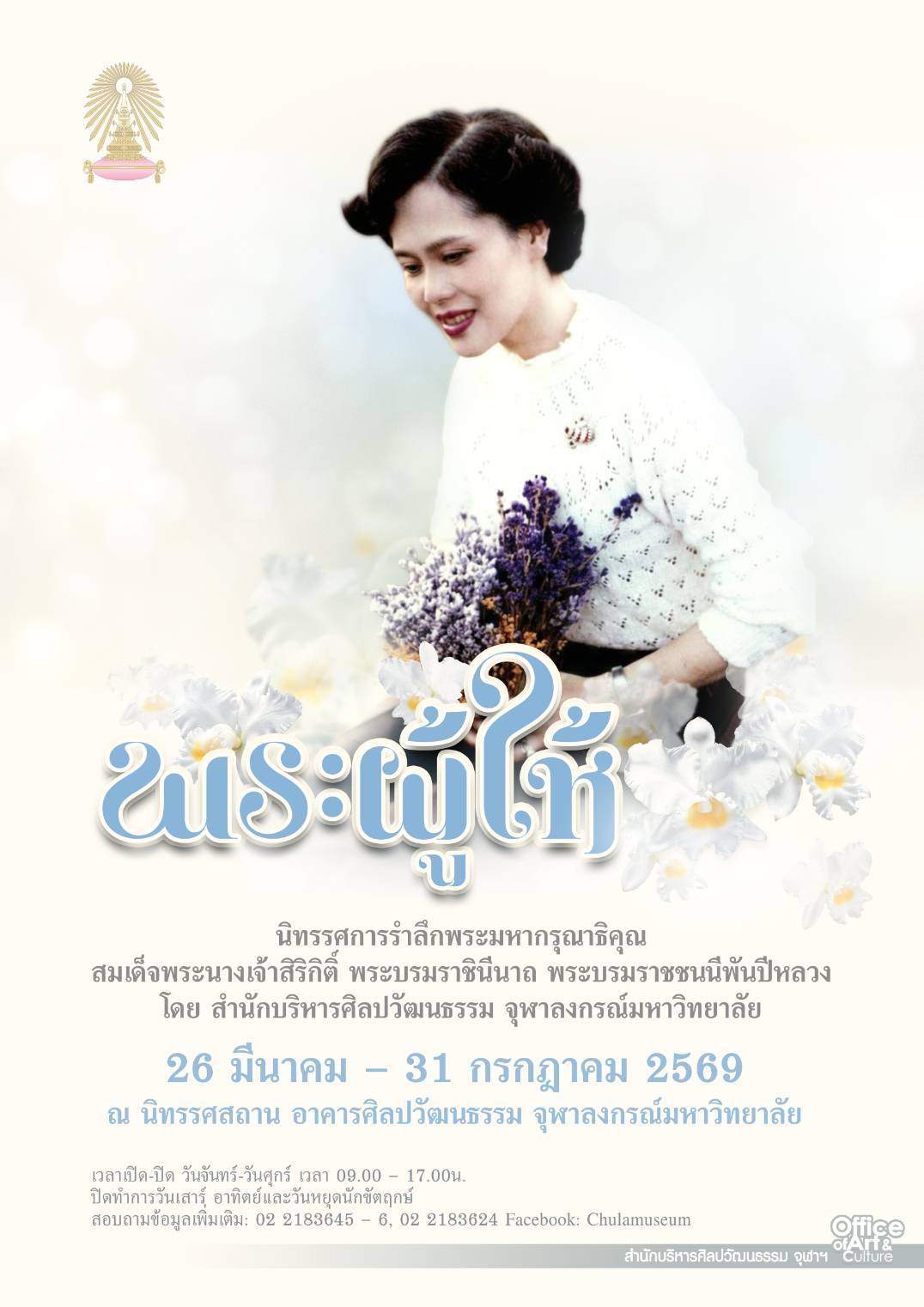 นิทรรศการ “พระผู้ให้” ผู้รับผิดชอบนิทรรศการ สำนักบริหารศิลปวัฒนธรรม จุฬาฯ ระยะเวลาที่จัดแสดง 26 มีนาคม – 31 กรกฎาคม 2569 ห้องนิทรรศการ ห้องนิทรรศสถาน อาคารศิลปวัฒนธรรม…